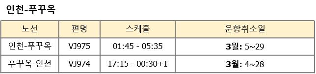 항공사 사정으로 인해 아래와 같이 운항 스케줄이 변경 안내 드립니다.