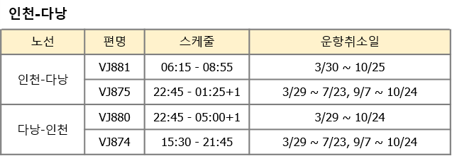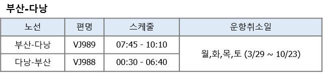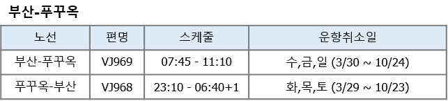 항공사 사정으로 인해 아래와 같이 운항 스케줄 변경 안내 드립니다.