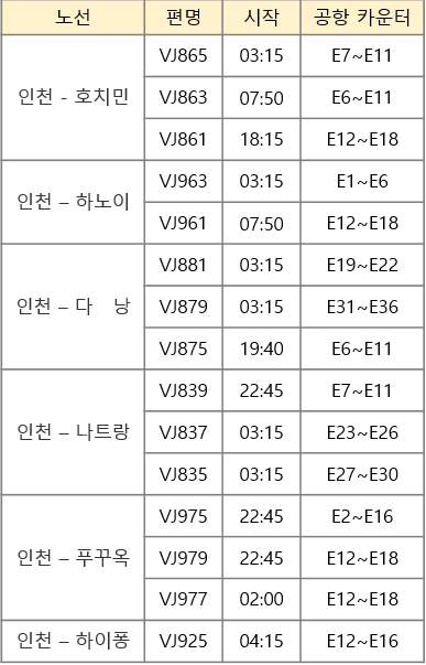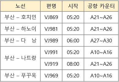 • 운영시간: 출발 3시간 ~ 1시간 전까지