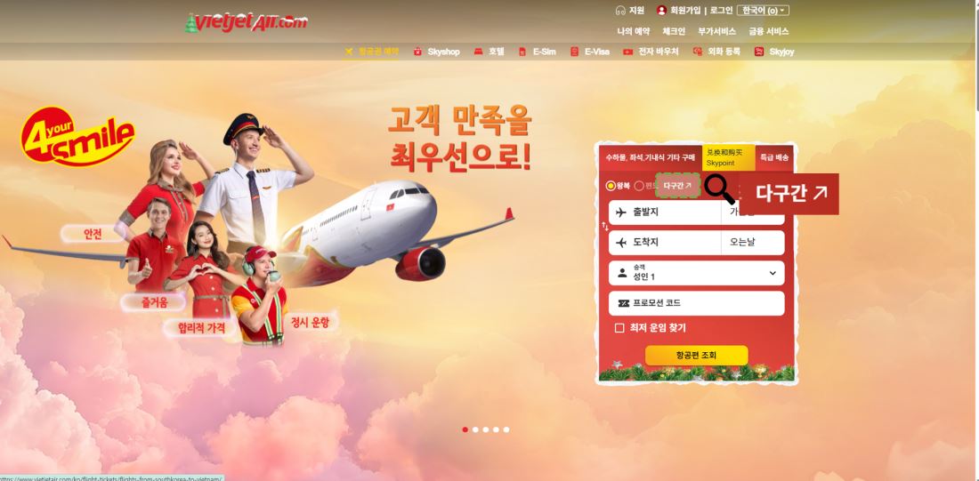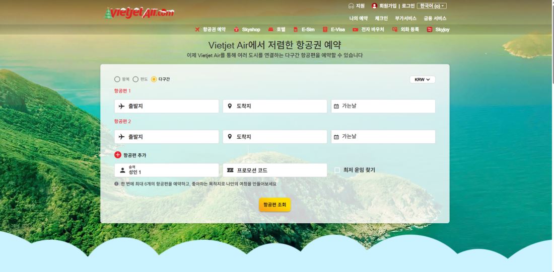 비엣젯항공 홈페이지에서 다구간 예약 기능이 새롭게 오픈되어 안내드립니다.