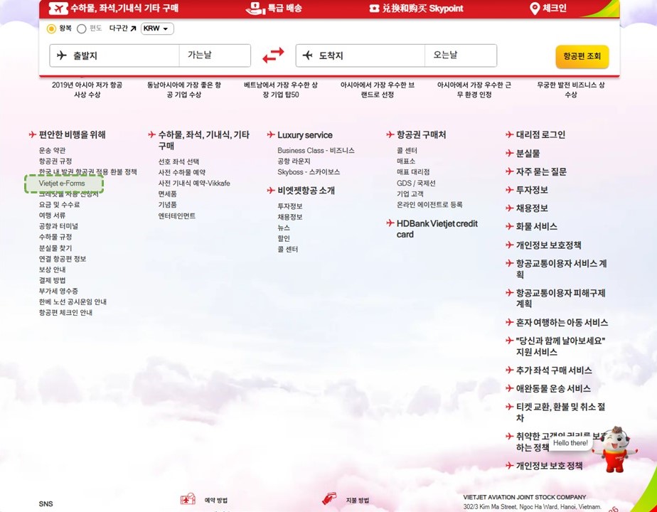 환불 신청 방법 1. 비엣젯항공 홈페이지 접속 하단의 [Vietjet e-Forms]을 클릭합니다.