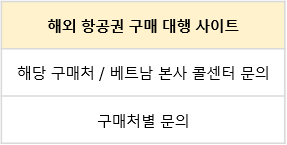 구매 방법 • 항공권 구매처에 따라 구매 방법이 다르므로, 아래 표를 참고해 주시기 바랍니다.