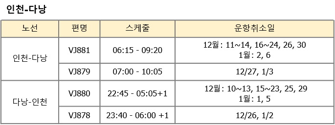 • 2025년 동계 스케줄 일부 운항 취소 안내