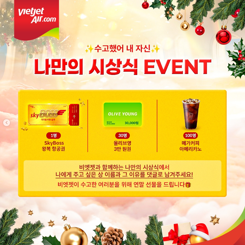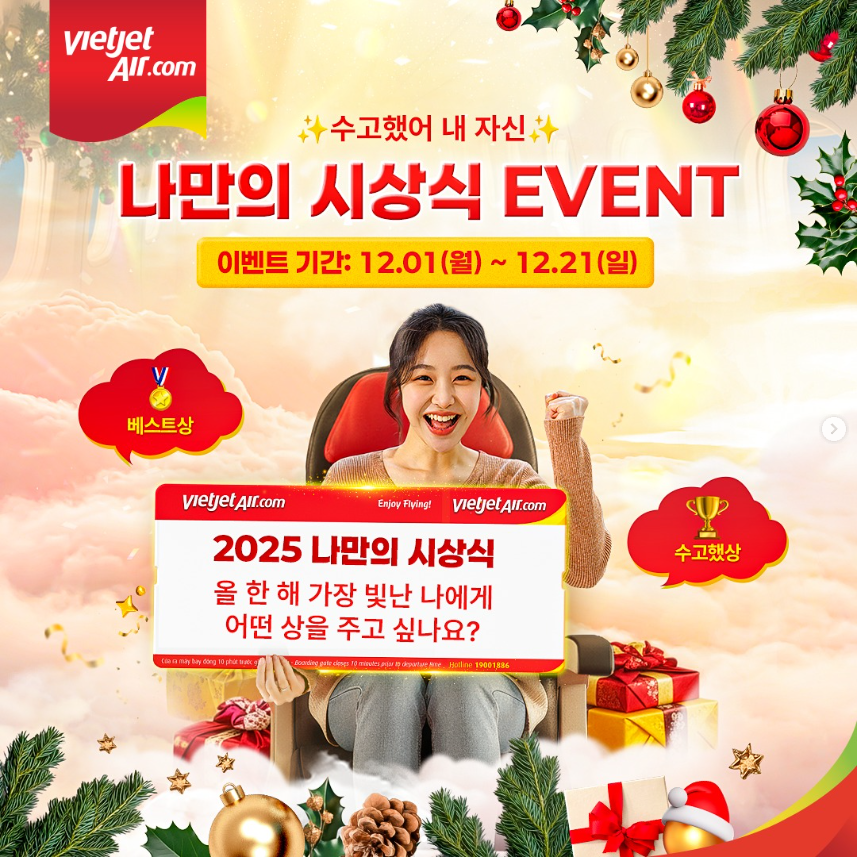 - 당첨자 발표: 12/29 (월) @vietjetkorea_official 에서 당첨 발표