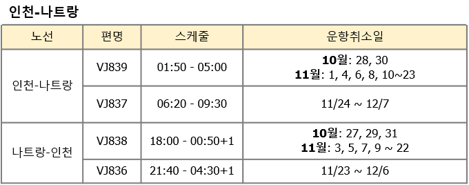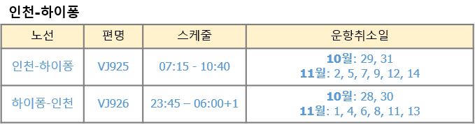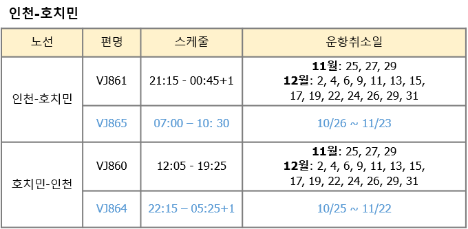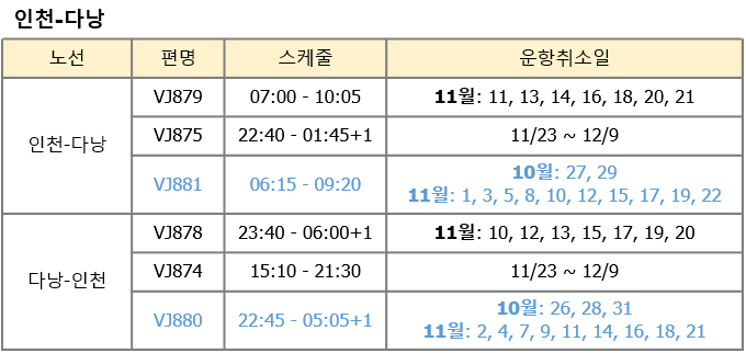 - • 비엣젯항공 홈페이지의 [나의 예약]에서 운항 스케줄 및 변경 가능 일정 확인 후, 한국 총판대리점으로 문의