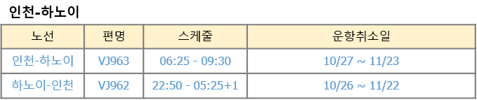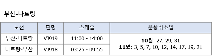 항공사 사정으로 인해 아래와 같이 운항 스케줄이 변경되었음을 안내드립니다.